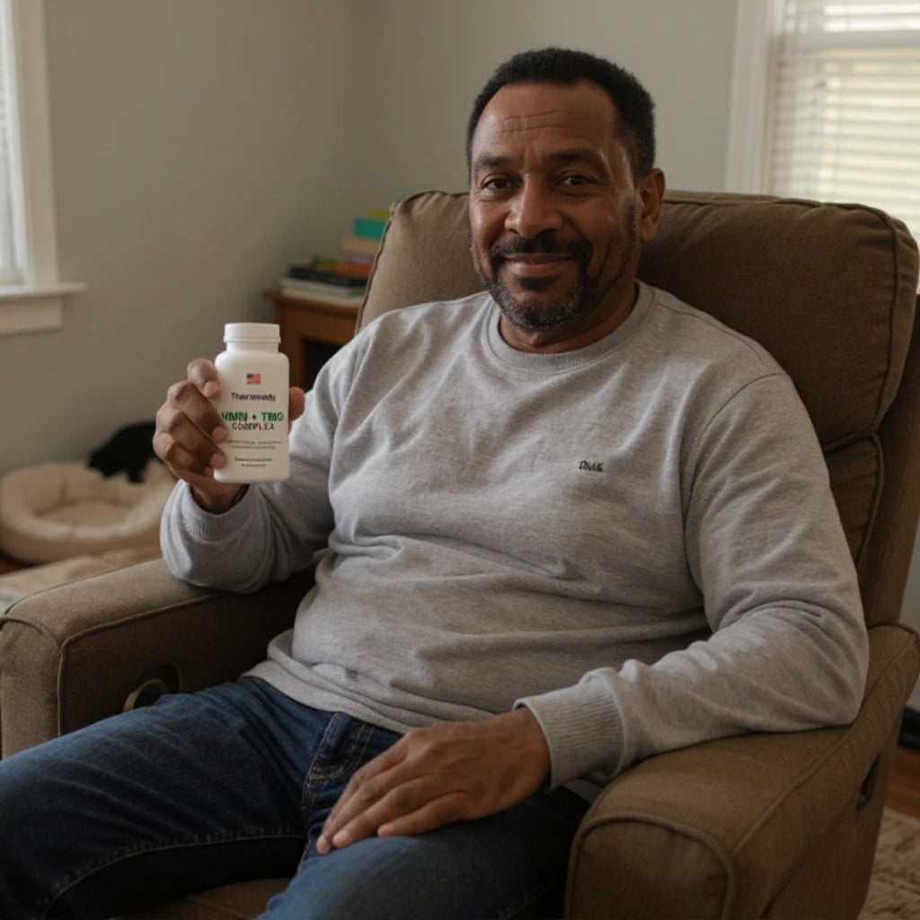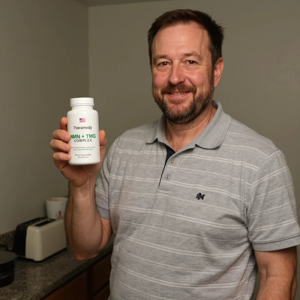 Theramedy uses NMN. The direct precursor studied to boost NAD⁺ at the cellular level, made in a US-based, GMP-certified facility.
